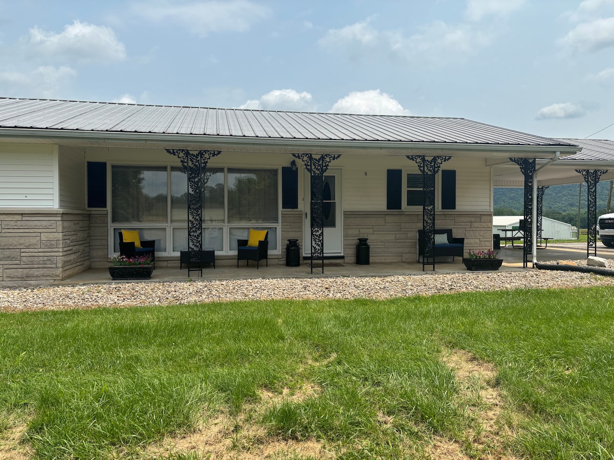 Stylish 2BR/1BA retreat with private Cumberland River access. Sleeps 6 with open-concept living, full kitchen, and pull-out sofa. Relax on the covered front & back porches, gather around the fire pit, or fish and kayak right from the property. Nestled on a quiet dead-end road yet only 15 min to Jamestown & Jamestown Marina. Perfect for families or friends seeking comfort, style, and a peaceful getaway with the whole family at this peaceful place to stay.