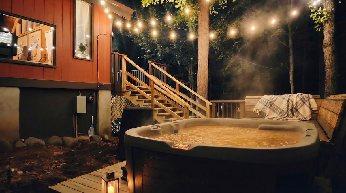Brand new outdoor hot tub, star watching & singing system. Nestled in the mountains, our cabin offers the soothing melody of the nearby river. Perfect for nature enthusiasts and relaxation seekers, it accommodates up to 6 guests. With attractions like Whiteface Ski, Adirondacks &Lake Placid nearby, it balances adventure and tranquility. Our modern luxurious cabin features brand amenities, kid- and pet-friendly amenities. Enjoy the serene ambiance and river sounds right at your doorstep.