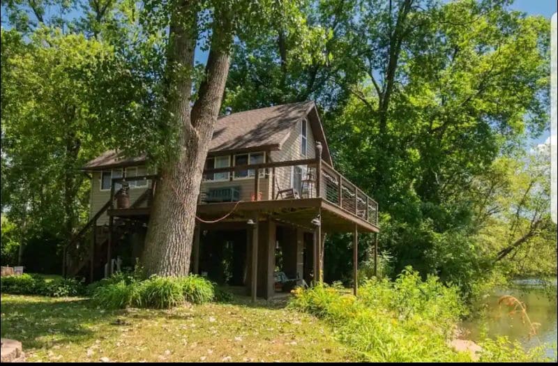 BNB Breeze Presents: Frog Hollow Lodge! Enjoy an unforgettable riverside adventure in beautiful countryside! Paddle downstream on a kayak, keep watch of the little ones with the river in front, or go fishing and pick up some goodies from Country Beary Shack. Delight in a cookout over the fire pit. At night, relax under the stars on the deck. Come and create new memories for the perfect family vacation! - Outdoor Oasis w/ Deck, Picnic, Fire Pit + River Access! - Kayaks - Grill - Wi-Fi