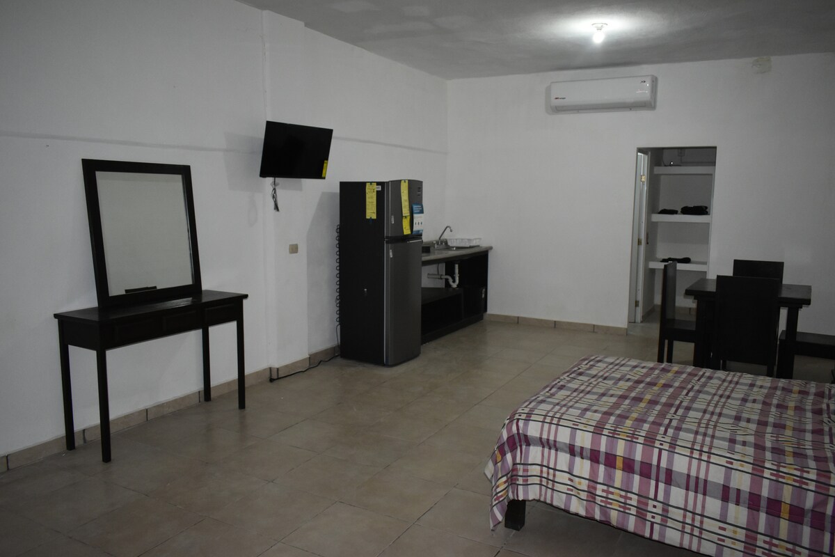 Relájate con toda tu familia en este bonito y totalmente equipado departamento, o bien si te encuentras de negocios este es el lugar indicado para tu descanso. Contamos con cocina, sala, una habitación, baño, aire acondicionado, calentador de agua, wifi y televisión por cable.