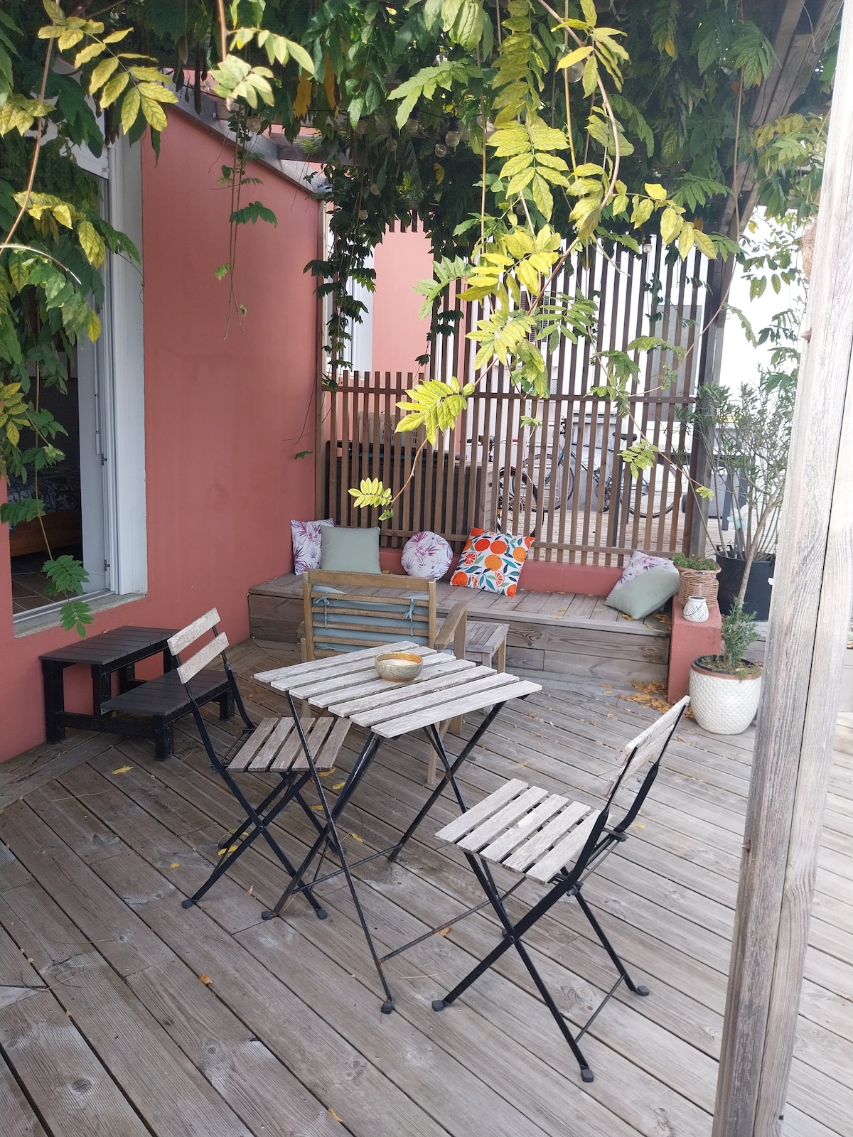 Small seaside, independent garden room with private bathroom for one person. Just a 5 minutes walk from the beach and a 10 minutes cycle from shops and restaurants. Private entrance and use of back garden terrace. A bicycle is available free of charge. There is Wifi, small fridge, ,electric kettle , coffee machine and microwave. Please note that there is no kitchen or tv. Bus stop nearby. I am an English speaker and live just beside the studio . Some noise possible due to next door renovation