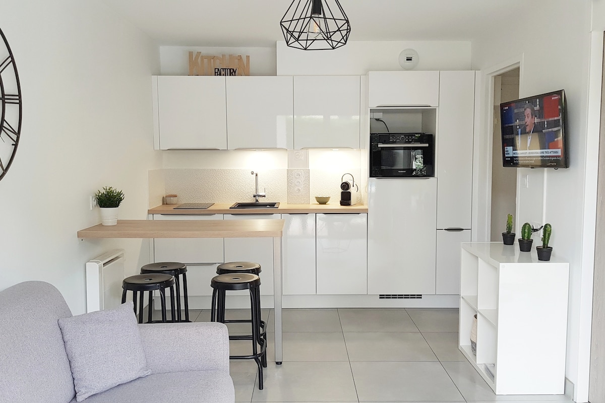 Mon logement est proche de la plage et des restaurants. Vous apprécierez le confort le calme et la vue. Mon logement est parfait pour les couples, les voyageurs en solo et les familles avec 2 enfants (+ 1 bébé - prêt d'un lit bébé+ chaise haute+ baignoire plastique+ parc). La cuisine comprend un réfrigérateur/congélateur, un four électrique, des plaques vitro céramiques, un lave vaisselle et une hotte. Le logement a été rénové en 2014 avec cuisine et sanitaires neufs.