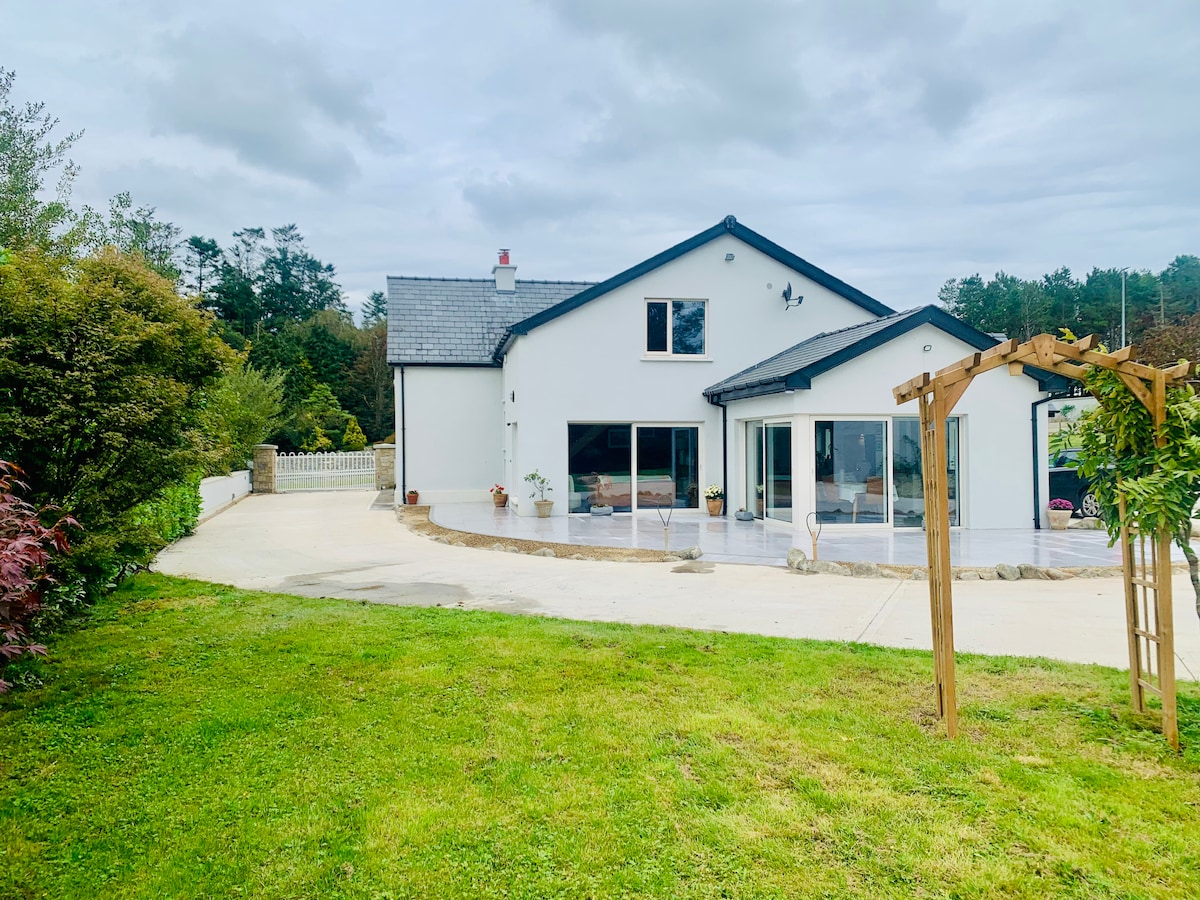 A beautiful traditional stone built barn converted into a contemporary/industrial/rustic living space with quirky touches. Located in the idyllic foothills of the Wicklow Mountains, on the Wicklow Way, it features an open plan kitchen/living/dining space, a mezzanine bedroom and a spacious wet room. An extension offers an additional boot room/bathroom and paved courtyard area. The grounds are comprised of upper and lower lawns set on half an acre. A country pub is within walking distance.