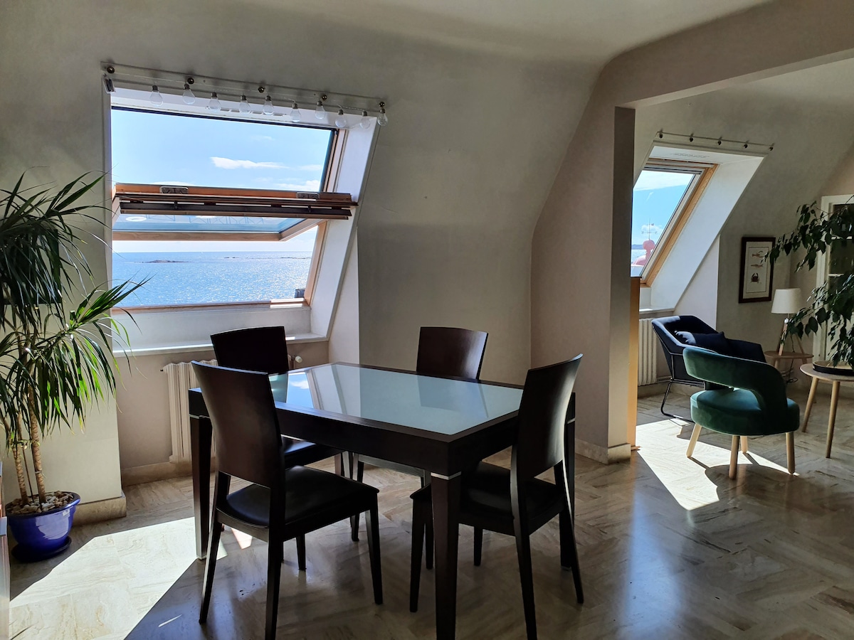 Situé à Concarneau au 3ème (sans ascenseur) et dernier étage d’une copropriété calme du centre ville, l'appartement (70m2) dispose d’un salon séjour lumineux, une cuisine, 2 chambres, une salle de bain et un WC séparé . Vous profiterez d'une magnifique vue mer. Idéalement situé pour profiter à pied de la plage, de la Ville Close, du port, des restaurants et de tous les commerces du centre ville. Vous aurez la possibilité de vous garer sur le parking privé de la résidence (place attribuée).