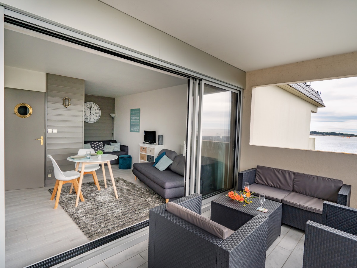 Welcome to L'IROIZH, a 30m² studio designed to offer you an unforgettable experience. Located right on the water, this haven of peace is in a quiet residence overlooking Concarneau's most beautiful beach, Les Sables Blancs. 180° sea view: enjoy an exclusive panorama every morning. Bed linen & towels provided ☺️ Independent entrance / key box Private parking space in front of the residence Ultra-fast fibre Wi-Fi: Stay connected or work from home