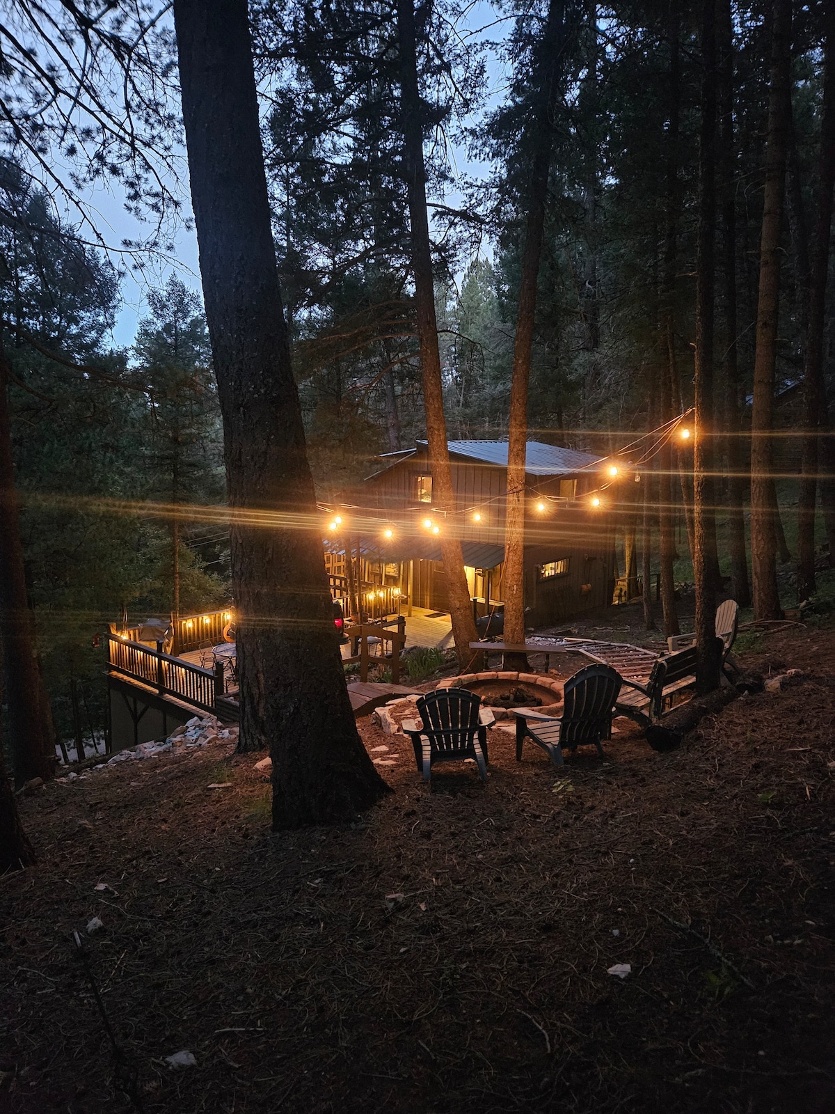 If you're looking for a peaceful cabin in Upper Canyon close to everything you want in Ruidoso, than look no further. Cabin boasts a fire pit, an amazing hot tub on a spacious back deck with fawntastic views, plenty of star gazing and ability to watch the snow fall from your hot tub, or rocking chair. Come experience beautiful views, tall pines and wildlife (you will see tons of deer daily). This cabin is located in Upper Canyon and is close to everything you want to enjoy in Ruidoso.