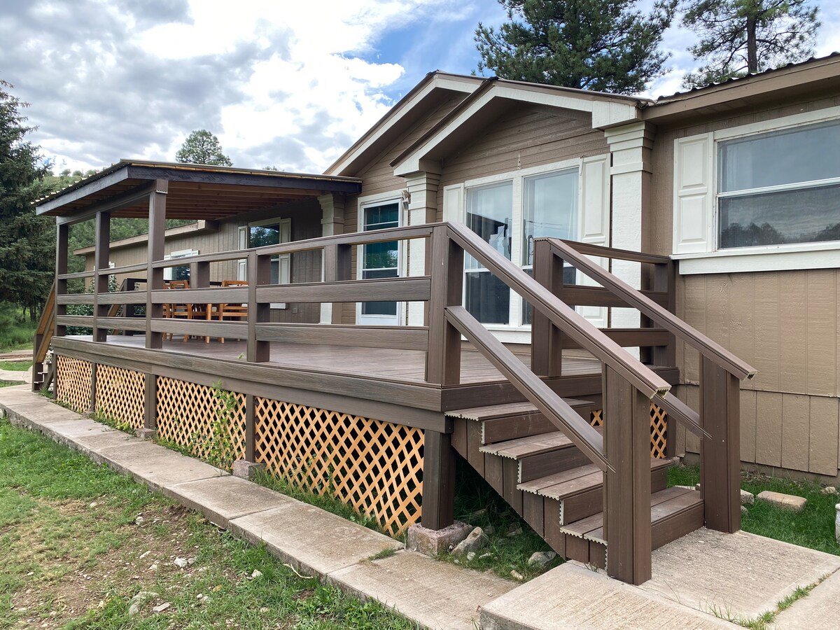 Escape to the mountains, this peaceful duplex (my wife and I live on property) is only minutes to downtown Cloudcroft. Two bedrooms, each with a queen bed, tub/shower and fully furnished kitchen. Spacious patio with gas grill and comfortable furniture to enjoy the cozy climate of the Sacramento Mountains. Great Wi-Fi for all your devices and a smart TV to stream your favorites. Pet friendly.