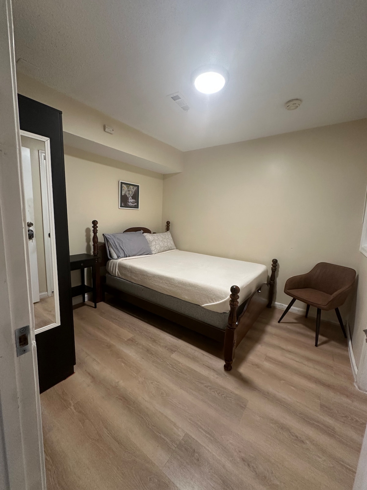 I'm pleased to share my latest design after a two year renovation project! This finished basement has been totally renovated and designed with lots of great amenities! It features secure parking, a private entrance, brand new kitchenette area and private bathroom, dedicated workspace, LOTS of windows for natural lighting, a blackout curtain in the bedroom, and the entire ceiling has been soundproofed! Extra soundproofing has been used in the bedroom for added comfort and enjoyment!