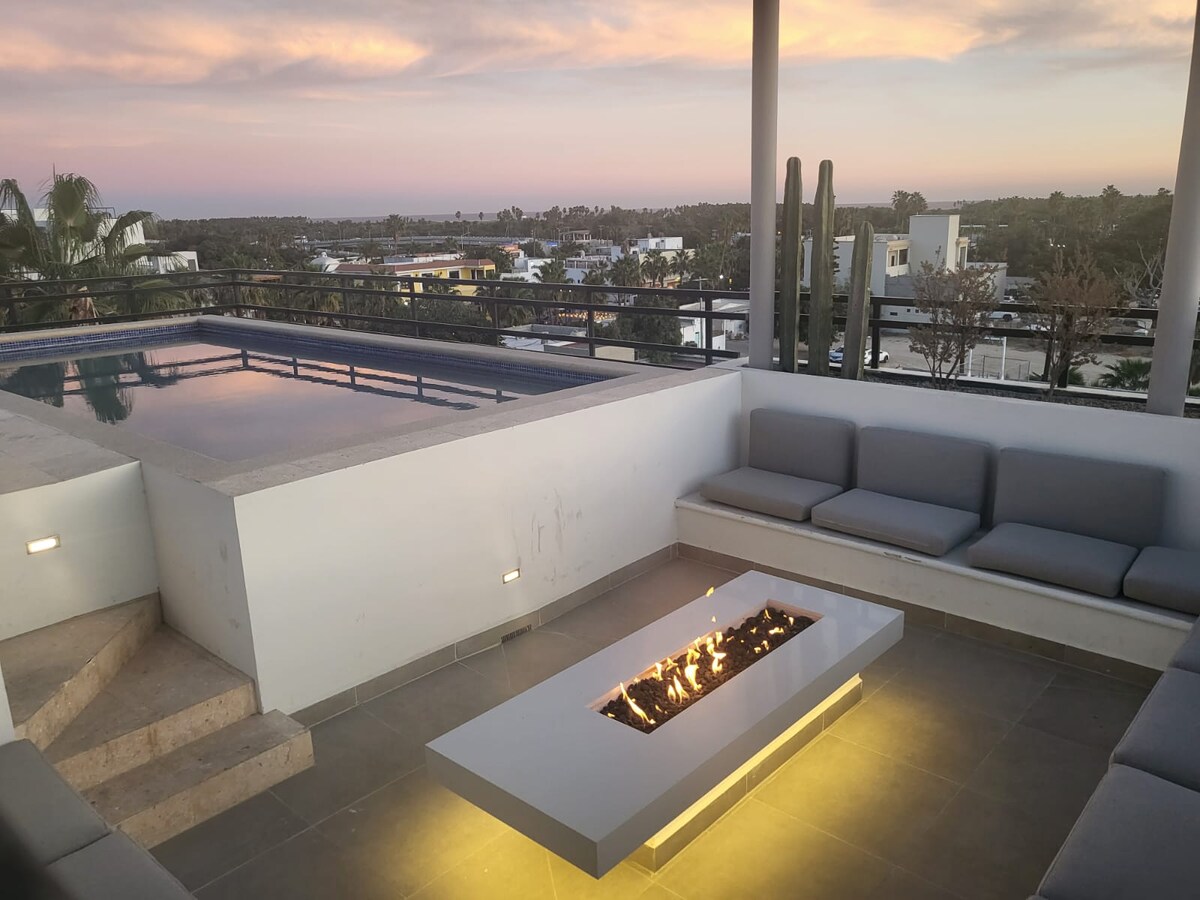Escape to Casa Chili, a modern top-floor apartment in San Jose del Cabo's vibrant art district. Perfect for two, this retreat offers a fully equipped kitchen, parking and a stunning shared rooftop with a heated infinity pool and 360° views. Just steps from Plaza Mijares, top restaurants and galleries. Experience the best of Cabo in style and comfort.