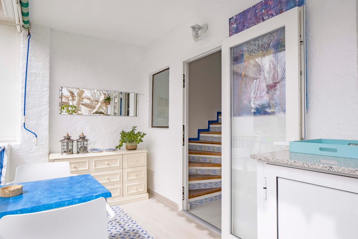 Déjate seducir por la "nueva energía" que tiene la" NeW "Casita AZUL. Descubre cómo estar aquí ,te ayuda a renovar tu energía vital, mental, afectiva y espiritual. ¡Ven a RenovARTe! A tan solo unos pasos de la playa de arena y del mar, la casa está especialmente decorada en azules para transmitirte paz y tranquilidad. Nota: Estancia mínima 2 noches.
