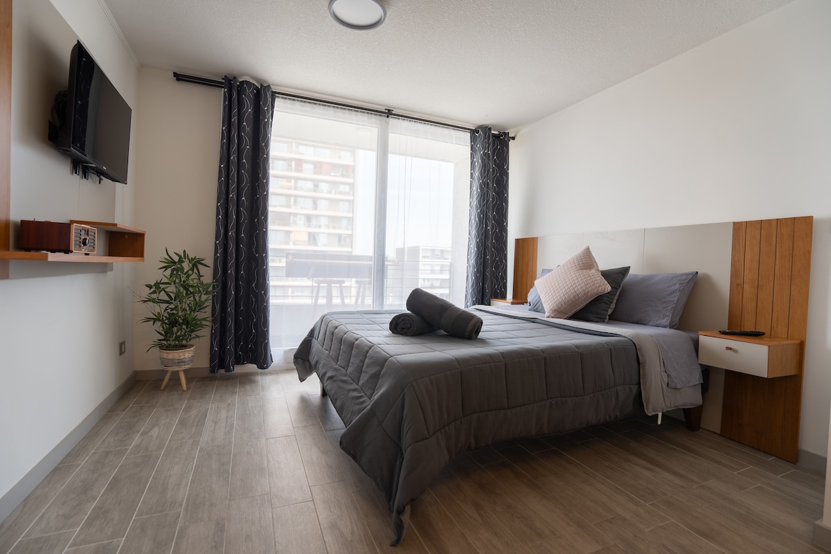 Welcome to our elegant apartment, located in Santiago Centro. Just steps away from amazing attractions such as Club Hípico, Movistar Arena, Fantasilandia, and the lively Meigg's and University neighborhoods, you'll enjoy the best location. A modern space designed to accommodate 2 to 4 people, equipped with everything needed for a comfortable stay. Additionally, the building features a swimming pool, gym, laundry facilities, and common rooms. Your adventure in Santiago starts here. Book now!