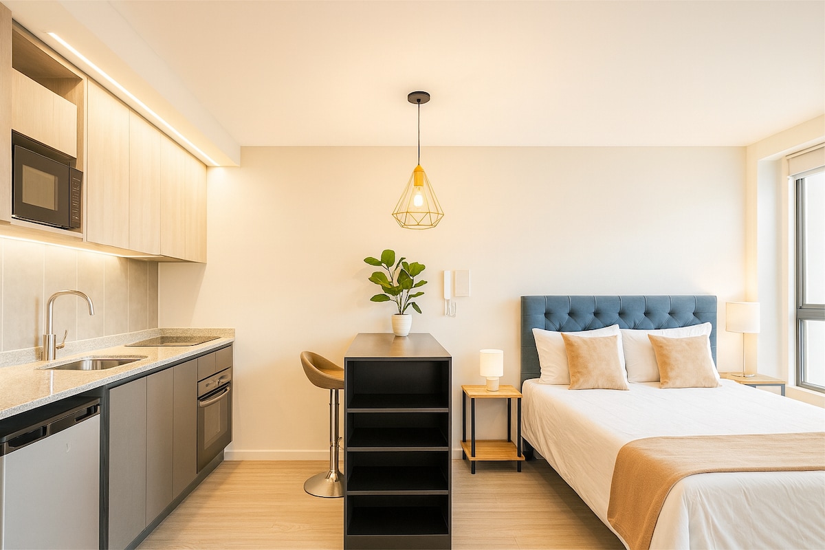 Descubre un encantador estudio moderno en una ubicación privilegiada en el centro de Santiago, ideal para parejas o viajeros que buscan confort y conveniencia. Cuenta con una cómoda cama matrimonial, cocina completamente equipada, baño moderno y una acogedora terraza perfecta para relajarte disfrutando de vistas urbanas. A pocos pasos de restaurantes populares, transporte público y las principales atracciones turísticas. ¡Reserva ahora y vive la mejor experiencia urbana en Santiago!