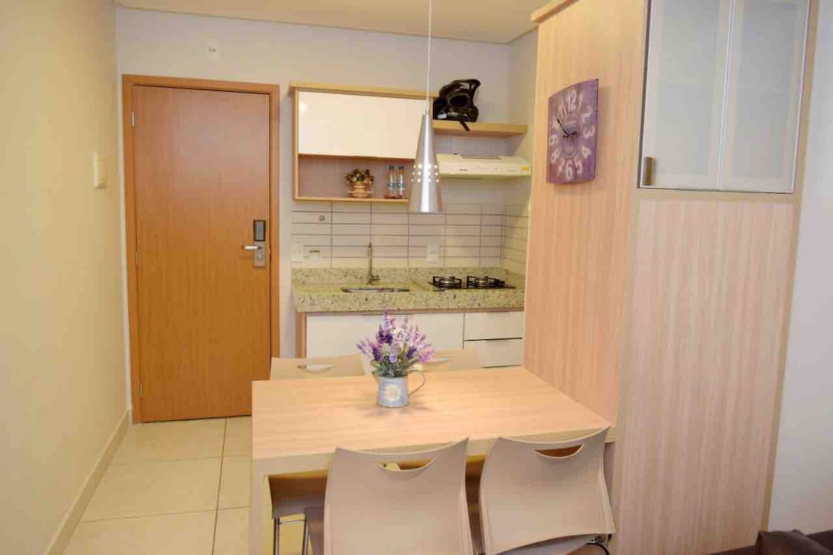 Ótimo apto n°1219 no Boulevard Suits, no décimo segundo andar. Apartamento para 5 pessoas( BEBÊS TAMBÉM CONTAM), completo com cozinha, fogão, frigobar, micro-ondas, a.c no quarto e utensílios básicos de cozinha.. Pq aquático 24 horas, com piscinas aquecidas e frias, ofurôs, piscinas kids, academia, restaurante, lanchonete, sauna, sala de jogos . Perto dos bares, restaurantes, clubes, mercados e padarias de Caldas Novas. NÃO CONTA COM ROUPAS DE CAMA (TRAZER OS MESMOS OU SOLICITAR COTAÇÃO).
