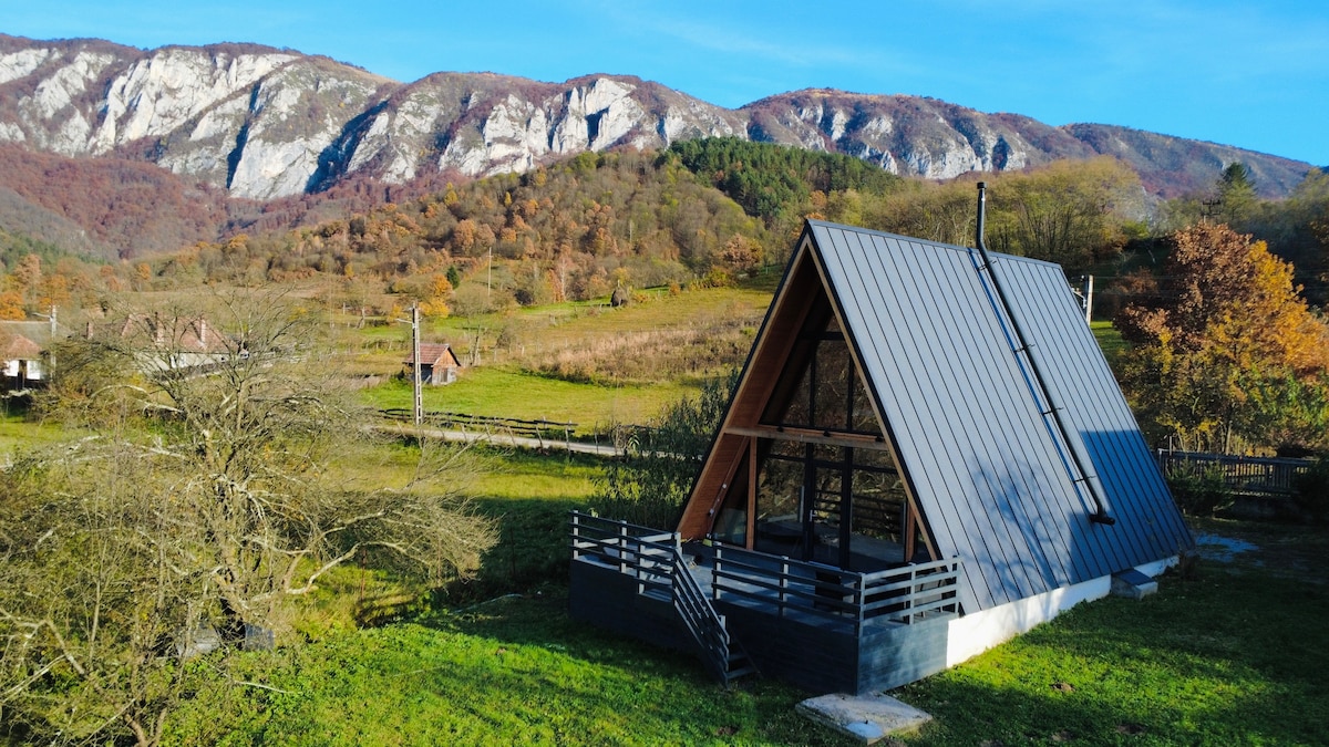 Relax in our serene 3 bedroom, 3 bath A-Frame cabin in the Apuseni Mountains. Surrounded by stunning nature, it’s the perfect place to unwind and reset. Enjoy a fully equipped kitchen, cozy loft, open-concept living, a projector screen, and breathtaking views. Hot tub available (400 LEI). Wi-Fi included (may be inconsistent). Experience comfort, calm, and mountain charm in every corner of your stay. @nordlandcabin