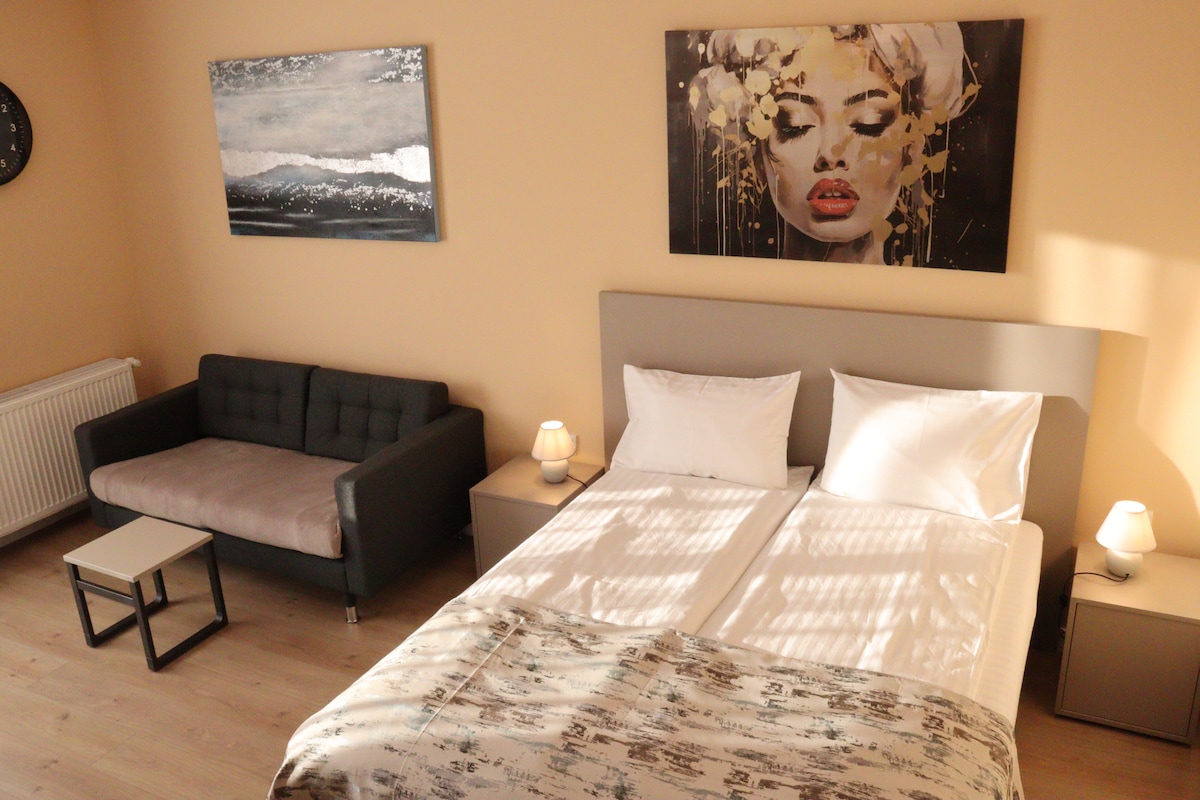 Welcome to your spacious 60sqm modern apartment. Ideal for extended stays, this is your perfect home away from home! You’re just steps away from the central train station and only 5 minutes from the city center, with quick access to tram and bus lines. You’ll be close to two newly renovated parks, and the complex itself features a peaceful park by the river, a coffee shop, gym, restaurant, and medical center. You'll have free underground parking and easy self check-in for a worry-free stay.