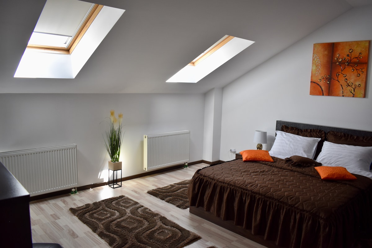 -modern residence in a popular location-anton pann street 12 -quiet and luxury flat with license -exceptionally clean, pin drop quiet, common areas, fireplace and large soaking tub -2 large independent bedrooms for 2 couples, one common space -located in a new building near Mihai Viteazu square. -walking distance of almost all the main attractions in Cluj, including the Unirii square and Muzeului square. -free underground parking -free Neflix - hi speed wifi -premium amenities