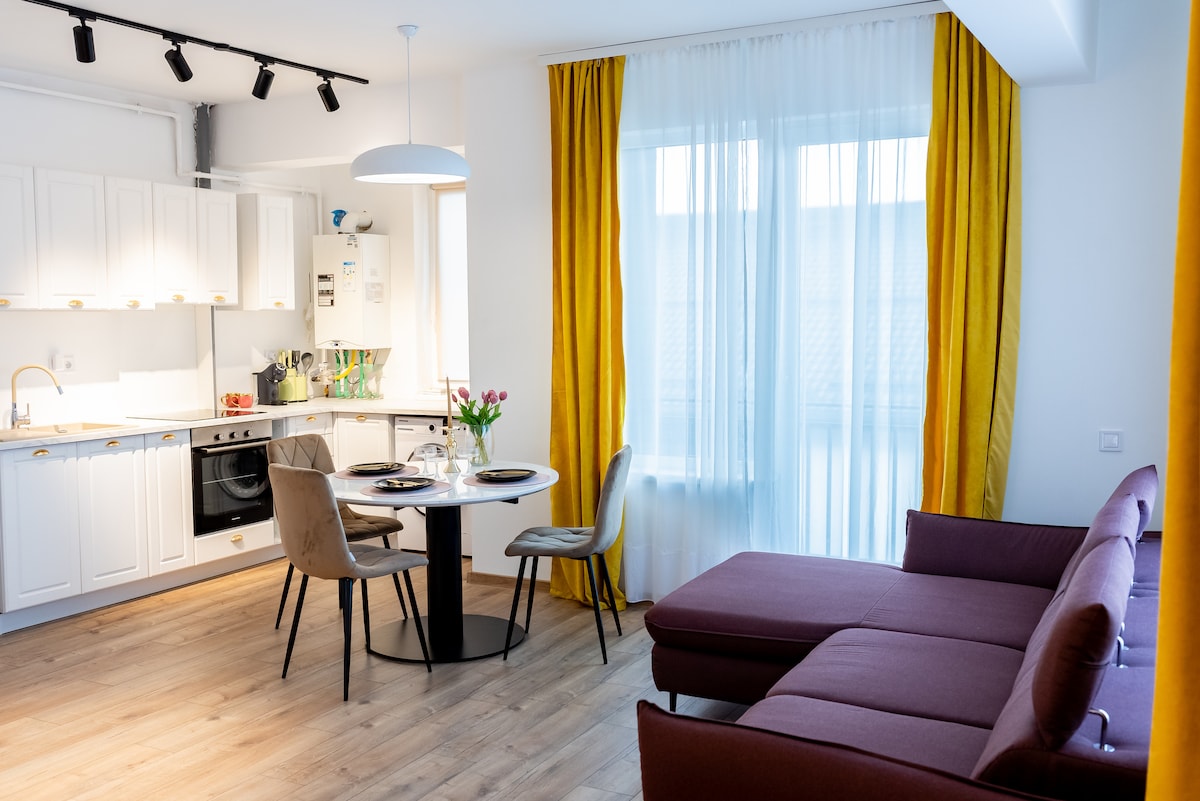 Buna venit la Velvet Nest – studio modern de 40 mp, situat la etajul 6, cu lift și parcare subterană. Design scandinav, pat velvet, atmosferă caldă și relaxantă. Dotări: pat + canapea extensibila de 140cm, bucătărie complet utilată, WiFi rapid, cont de Netflix INCLUS, espressor, baie modernă. Acces foarte rapid la Baza Sportivă Gheorgheni, unde poți juca tenis, volei, fotbal, ping pong și la 7 min de Iulius Mall. La parterul blocului se afla Mega Image, Farmacie, pizzerie...