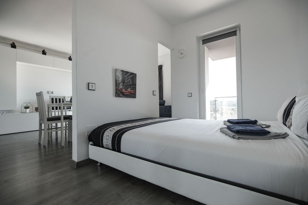 Welcome to this cozy and spacious apartment with minimalist decor. It is located in a residential area with few tenants close to Iulius Mall with easy access to the center and the airport (being positioned on the main artery of the city). The bus stops are a few minutes' walk away and have connections to all the districts of Cluj city. The location is very easy to find, in an ideal area close to shops (Lidl, Kaufland, Leroy Merlin, Selgros).