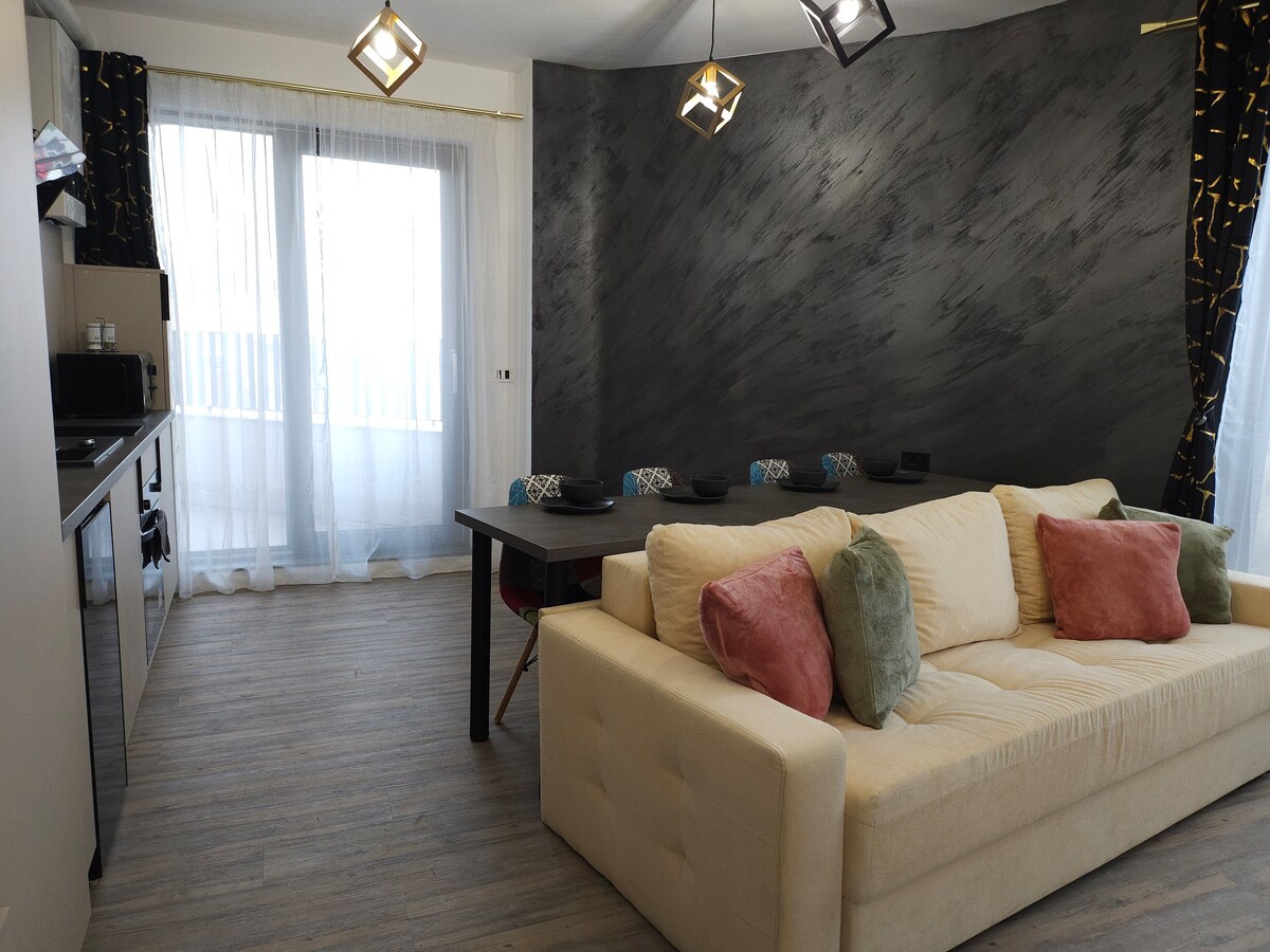 A comfortable 1 bedroom apartment for up to 4 travellers located between 21 Decembrie Bulevard and Calea Dorobantilor in a new modern building. The apartment has a great view in a clean and quiet building in between 2 major routes. The streets alone offer quick access into downtown (5 min at the most), an easy route to the airport and top Office buildings in Cluj(The Office, Iulius Mall). The down town is minutes away, with coffee shops nestled along the way.