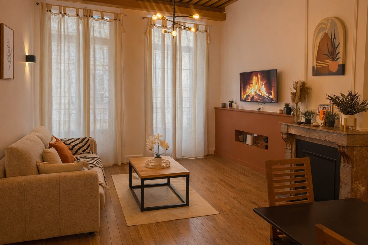 Maison vigneronne, rénovée en 2021, au coeur du village viticole de Givry, située sur la route des vins de la Côte Chalonnaise. Gîte 80 m2 avec cour intérieure partagée où sont mis à votre disposition salon de jardin, accès au barbecue, table de ping-pong, ainsi qu'à la piscine chauffée (mai à octobre selon météo) Capacité d'accueil de 4 personnes. Cuisine équipée, salon TV et 2 chambres dont 1 avec sdb. Toutes commodités et activités (vélo, dégustation, ...) à proximité