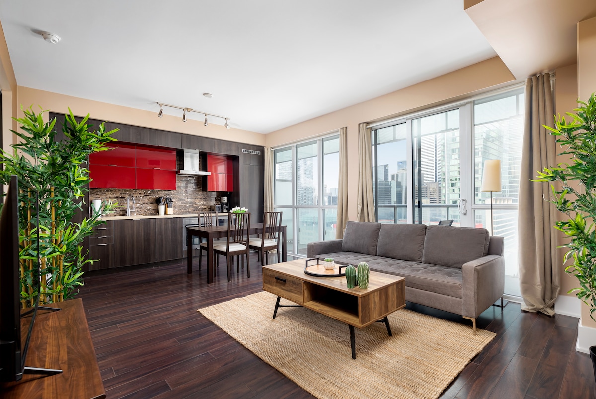 Enjoy a luxurious and cozy experience in the heart of downtown Toronto. With just steps away from the city’s top attractions (CN Tower, Scotiabank Arena, Rogers Centre), Metro Toronto Convention Centre, and the transit hub Union Station, the condo is perfect for couples, solo adventurers, business travellers, and families. Enjoy stunning views of the lake and city skyline, modern furnishings, a fully equipped kitchen, a comfortable bedroom, and a convenient study.