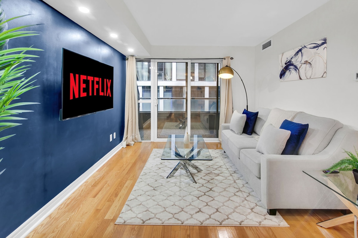 Welcome to your stylish 1 bedroom, 1 bathroom condo with 1 free parking space and only a 10 minute walk from the CN Tower, and right in the heart of Toronto! Enjoy the full indoor gym and sauna and the outdoor jacuzzi. A GoodLife fitness, LCBO and Scotiabank Theatre is just 5 minute walk! Cafes, restaurants, and entertainment surround the area. The unit includes fast Wi-Fi, Netflix, full kitchen, and in-suite laundry - perfect for work trips, weekend getaways, or extended stays.