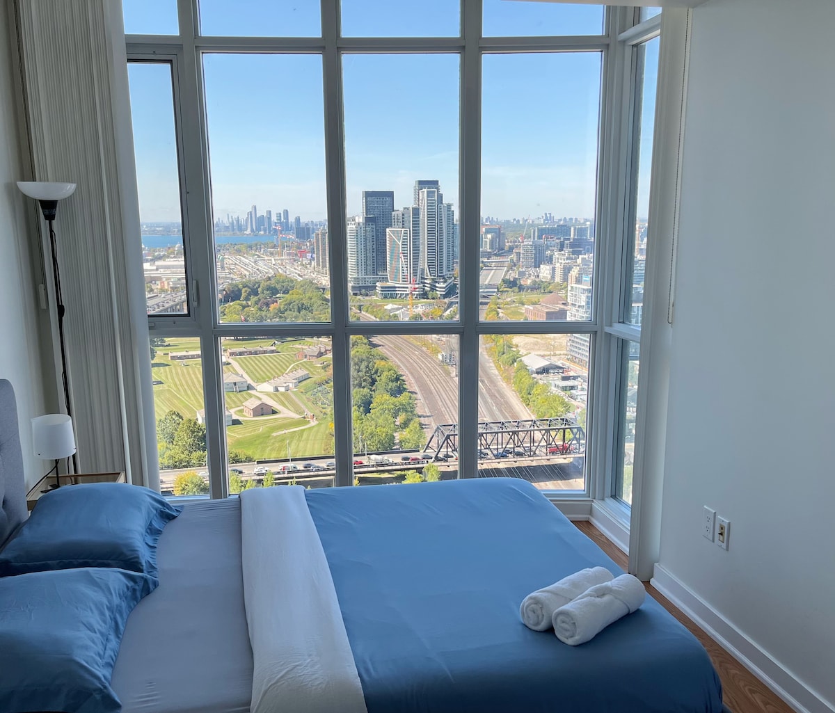 Wake up to stunning lake views in this modern downtown condo! Located in the heart of the city, this stylish 2 bedrooms unit offers floor-to-ceiling windows, a private balcony, and easy access to top attractions like the CN Tower, waterfront trails, and vibrant nightlife. Enjoy high-speed Wi-Fi, a fully equipped kitchen, in-suite laundry. Perfect for couples, solo travelers, or business guests seeking comfort and convenience with a view.