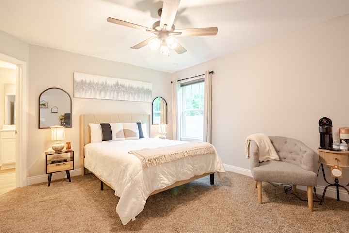 我在这个爱彼迎房源度过了非常美好的时光! 房源非常舒适,干净整洁,装饰简直令人惊叹——每个细节都经过精心策划,营造出温馨迷人的氛围。 房东很周到,确保一切完美。 如果您想寻找舒适、美丽的度假胜地,我强烈推荐此房源!