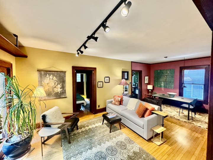 美丽宁静的绿洲,距离Bde Maka Ska和哈里特湖仅几步之遥。 骑自行车、步行、在海滩上游泳都很方便,无需开车。 房子和房源非常私密,街区也很安静。 Godson适应了我们旅行计划的几次变化,并始终能够立即回应任何问题或疑虑。