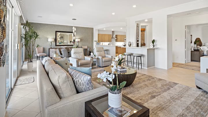 房子干净整洁,位于街角,私密性好。 娱乐设施非常好,有台球桌和乒乓球桌。 露台配备了所有便利设施。 Kevin和Greg快速回答了我们提出的任何问题。 这栋房子非常适合8-10人放松身心,玩得开心!