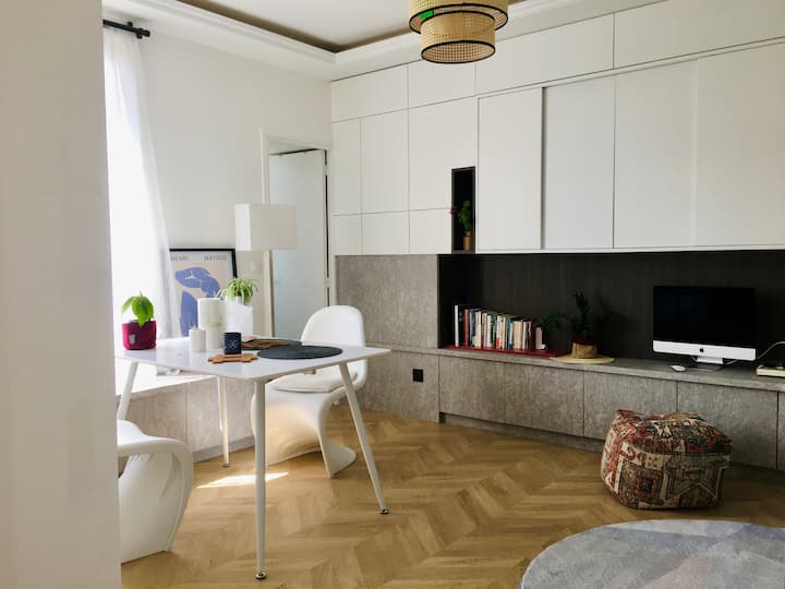 小公寓设计精良,非常干净,设备非常齐全,非常干净,非常实用。 非常安静。地理位置优越,靠近市中心和RER。