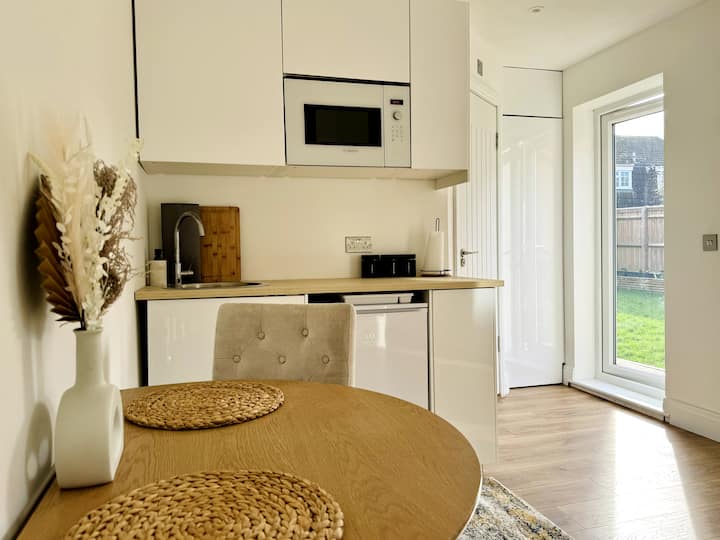 一间改建的漂亮车库,配备了我们所需的一切。 我们感到有点惊讶,入口是通过房东的花园——但这不是房东的错——只是我们自己的疑虑。 非常干净,床很舒适,和房东的沟通很棒。 如果每个人都能多一个枕头,我们会非常感激。