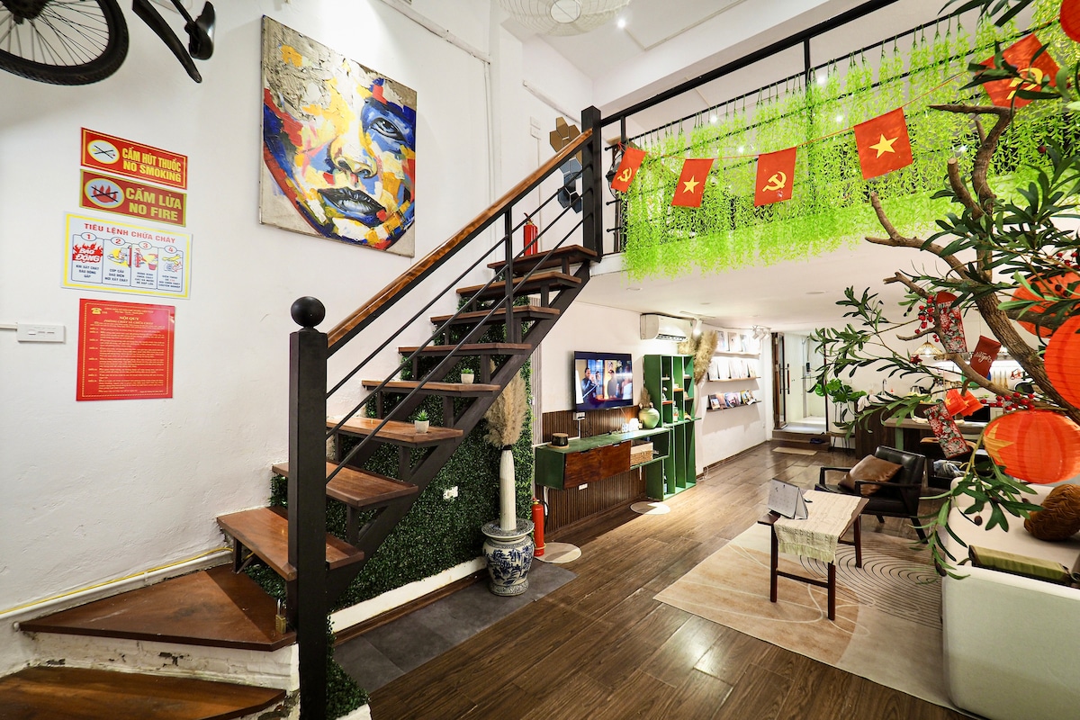 - Loft with reliable wifi is in a picturesque old building covered in lush green vines facing Westlake - Just a 30-minute drive from the airport and a 10-minute hop from the Old Quarter - Area features a vibrant expat community and numberous cafes, restaurants, and salons, providing a lively yet tranquil retreat on a peninsula surrounded by Westlake with minimal traffic - Furniture, made from reclaimed wood in our workshop, promotes environmental sustainability and local craftsmanship.