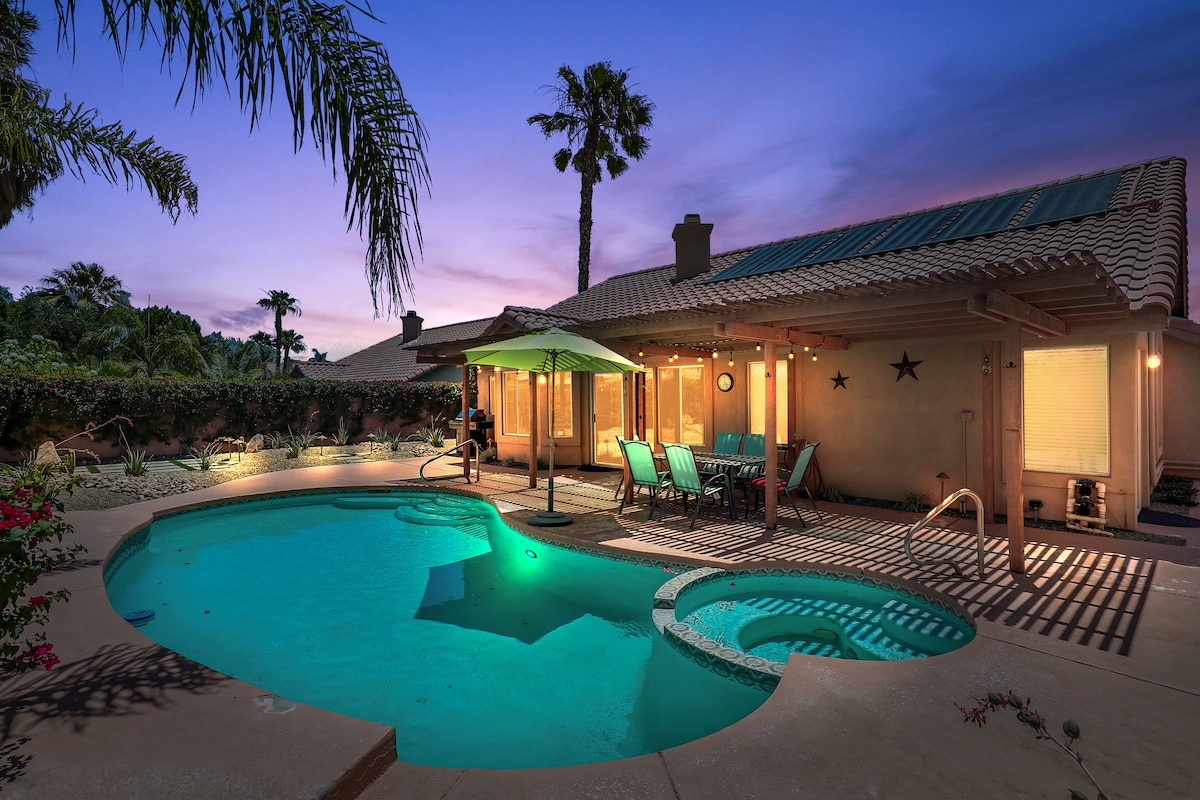 Embark on a serene escape at "Casa Tranquila". ☀︎ Your comfort is our commitment—experience an unparalleled getaway! → Spectacular Pool & Spa Oasis: Saltwater pool, heated spa, with panoramic golf course and mountain views. → Poolside Paradise & Entertainment Hub:Sunset magic and BBQ feasts by the large fire pit, with shuffleboard and foosball challenges with friends. → New Speakeasy for poker, bumper pool, ping pong, darts, and live sports on TV Your Unforgettable Stay Awaits—BOOK NOW!