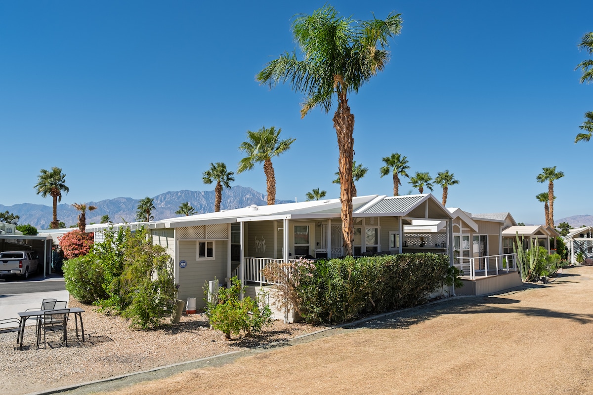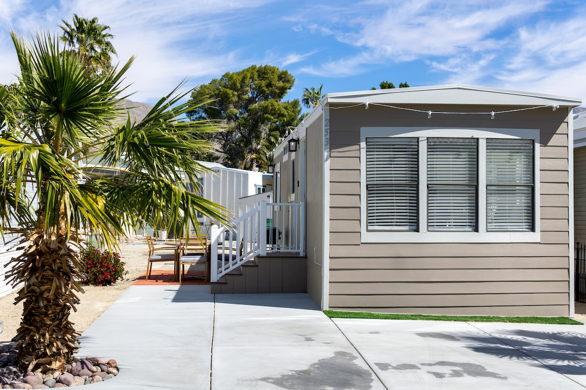 This tiny house is not so tiny at 600 sq. ft. Light-filled and mid-century modern-appointed in a gorgeous hot springs retreat, situated on a lake and right across from the mineral pools. There are wonderful views of the sunrise over the mountains behind the lake, while egrets emerge and ducks stir from sleep and the black swan settles into his place under the oak tree. The desert wakes up and is bathed in sunlight while you enjoy a morning coffee on the patio before your first hot pool dip.