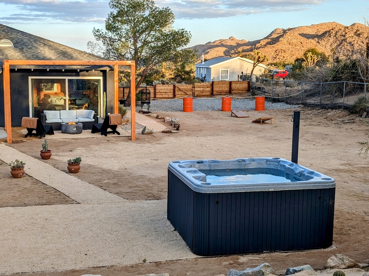 8.2 miles from JTNP Wake up to sweeping vistas of sunlit desert hills and gorgeous sunsets. Kitchenette adjacent to the bedroom, with cafe table for quick meals. And large dining table in the living room for lingering dinners. Enjoy your morning coffee on the private patio, soak up the sun, or stargaze under crystal-clear night skies. Upon booking, you will receive our Online Guest Guide, which highlights our favorite places to eat, drink, hike, making your stay genuinely unforgettable.