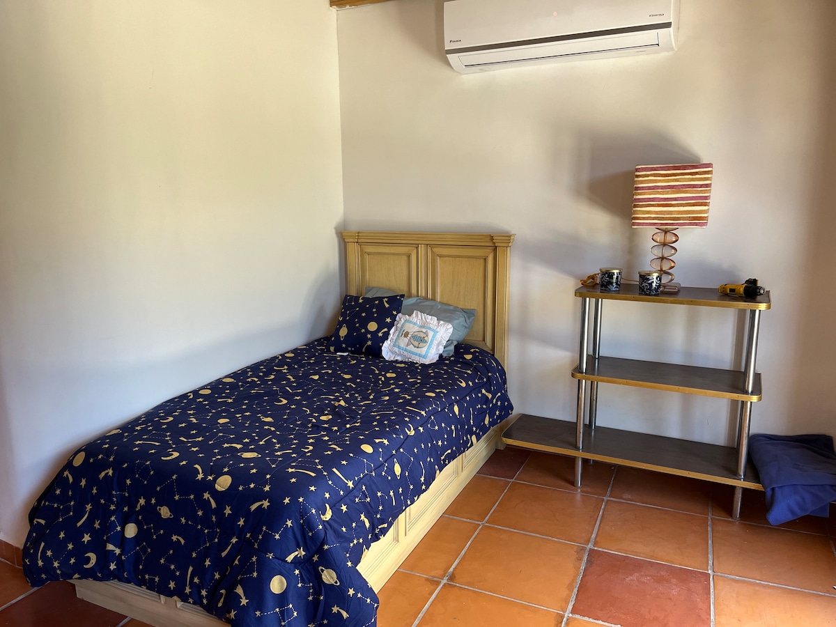 Acogedor Departamento tipo Studio en el sur de Monterrey Ambiente privado con entrada independiente y cochera privada. Un espacio cómodo, limpio y abierto con internet, cocina, área de trabajo, baño completo, Aire Acondicionado. etc. Excelente ubicación cerca de: Tec, Fundidora, Cintermex, estadio BBVA, Novo Sur, Plaza California, Centro, San Pedro, restaurantes, supermercados, cines, farmacias, casas de cambio 1 cuadra OXXO, BBVA, Banorte 2 cuadras de Starbucks 3 cuadras de L. C. Pizza