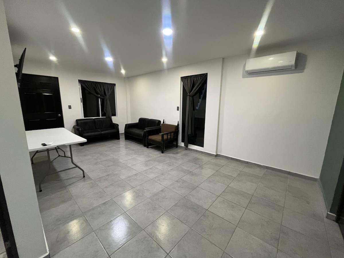 Cuenta con: Wi-Fi 2 habitaciones cama Queen Size con aire acondicionado. 2 sofa camas individuales en la sala con aire acondicionado. Sala con Smart TV 32” (Netflix incluido) Sala de estar con sillones puff. Cocina integral con estufa, sarten, microondas,y un frigobar para tus alimentos. Mesa con platos, vasos y utensilios. Baño y regadera (agua caliente). Lavadora para lavar ropa sucia. Camara de Seguridad. Kit de bienvenida: Café, 4 refrescos, 2 aguas y 2 cervezas