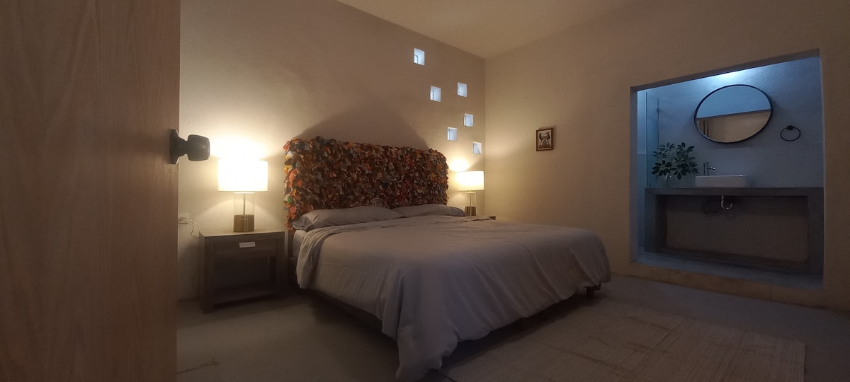 Ubicado en pleno centro, estarás a unos minutos de lugares icónicos como el Parque Fundidora, la Macroplaza, el Barrio Antiguo y CINTERMEX. Además, tienes hospitales, restaurantes, cafés y opciones de transporte muy cerca. Ideal para una escapada en pareja, un viaje de trabajo o simplemente para descubrir Monterrey desde una ubicación privilegiada. ¡Te esperamos con gusto!