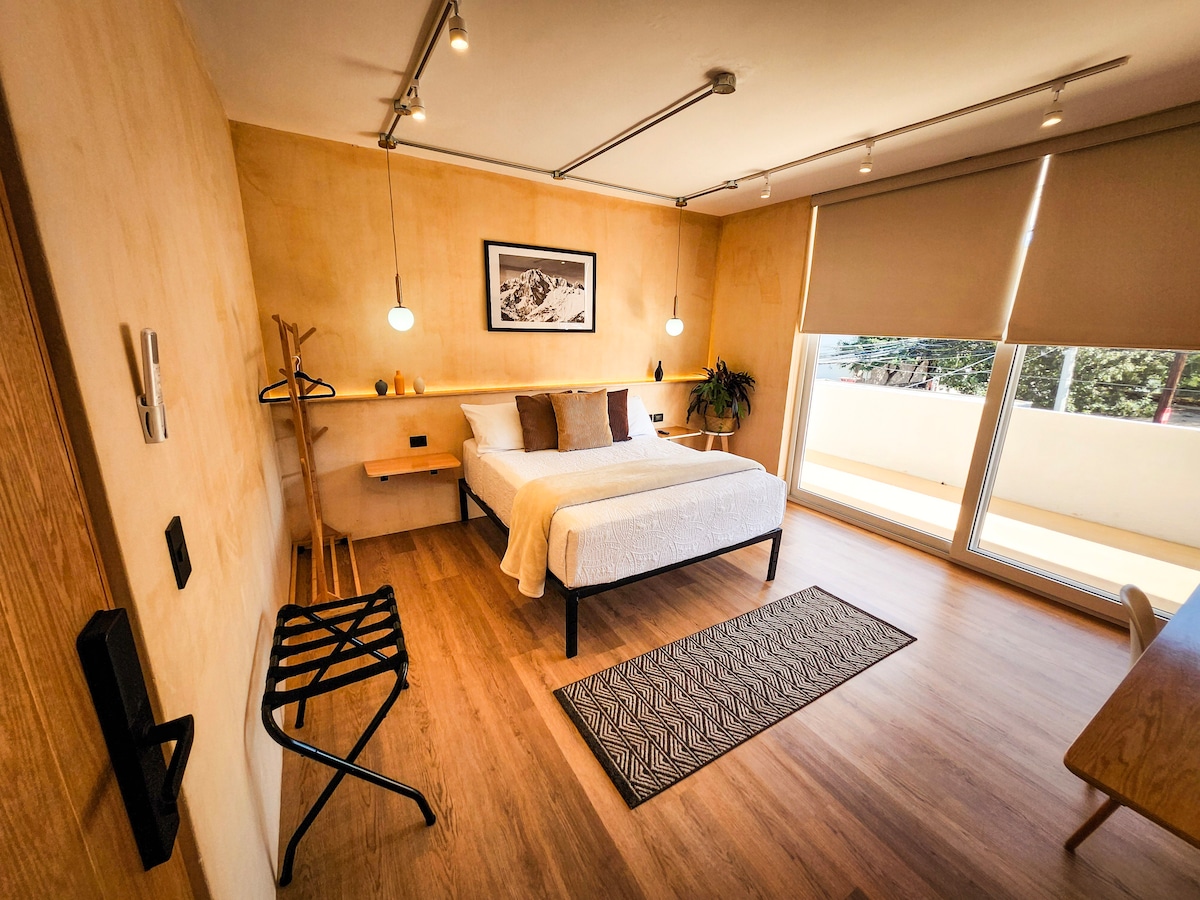 En Centrito Valle, la zona más exclusiva y vibrante de la ciudad, la Suite Mont Blanc ofrece acceso inmediato a restaurantes, cafés y entretenimiento. Inspirada en la frescura de los Alpes, combina elegancia, luminosidad y confort moderno. Un refugio perfecto para quienes buscan estilo y descanso en un solo lugar.