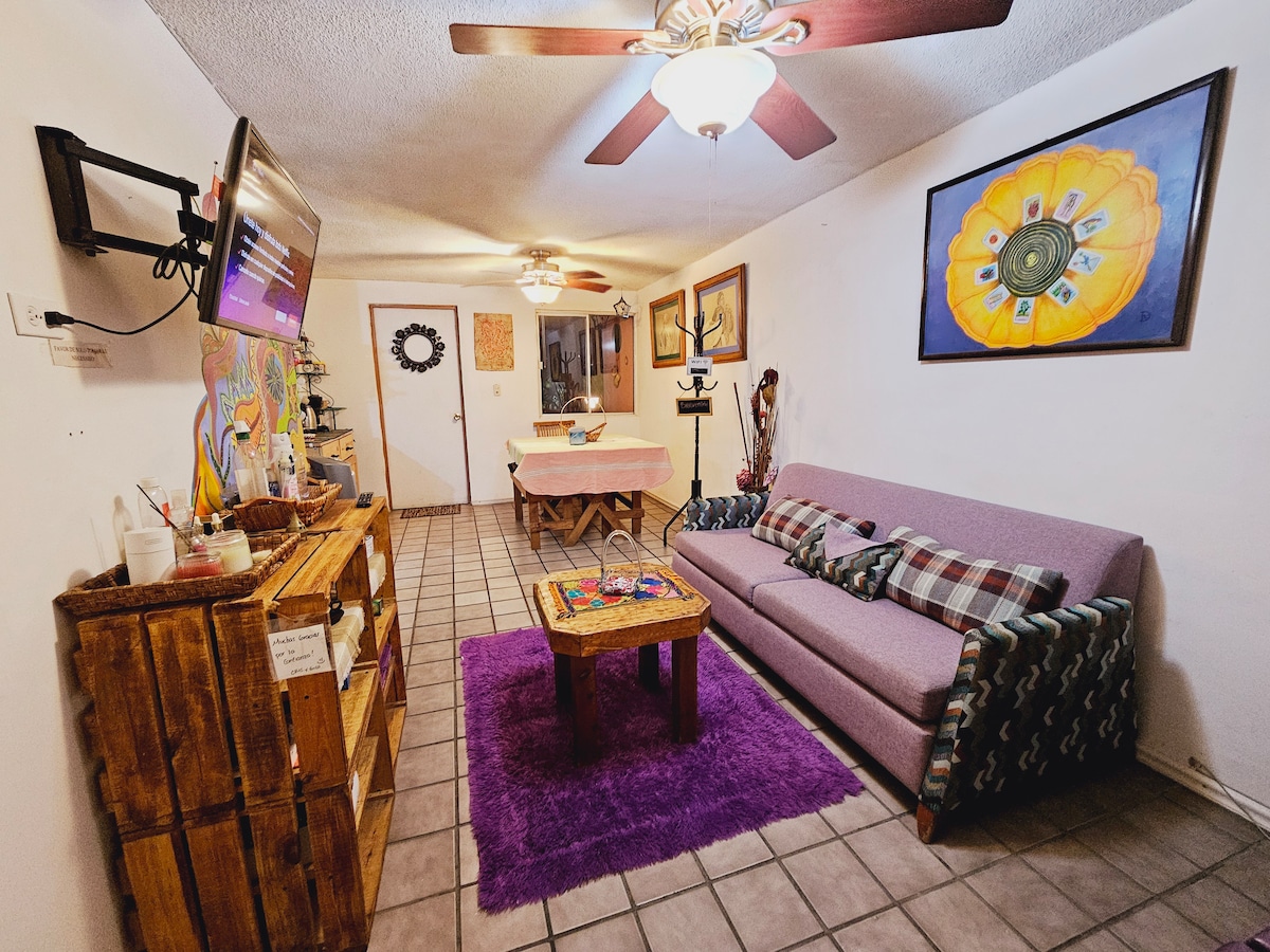 Ofrecemos un pequeño y cómodo loft-studio ideal para dos personas, pudiendo hospedar un máximo de tres personas, incluimos apps de streaming como Netflix, HBO Max, Disney+, Hulu y Prime Video para que disfrute el mejor entretenimiento durante su estancia, además de contar con entrada independiente y cerradura digital para su mayor privacidad, en su estancia incluimos algunas amenidades como shampoo, jabón corporal, café, botanas y bebidas de cortesía.