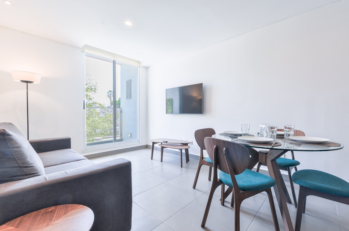 ¡Bienvenido a la Zona Médica de Monterrey! Totalmente equipado y amueblado para una cómoda estancia. Wifi, Smart TV, climatizado, 1 cajón de estacionamiento privado dentro del edificio. Ideal para ejecutivos, familias y turistas. Seguridad 24/7, 2 elevadores. Hasta 6 personas pueden hospedarse en 4 camas. Desarrollo con plaza comercial abajo, con tienda 7 Eleven 24 horas, desayunos Dolce Bisquet, cafetería Monte Coyote, restaurante italiano, comida corrida, entre otros.