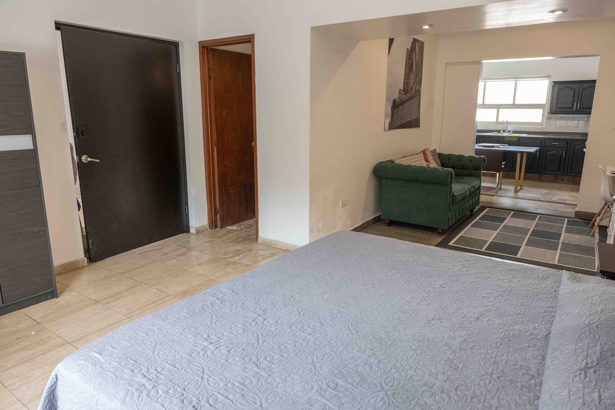 Habitación con entrada independiente en fraccionamiento privado, excelente opción si requieres estar cerca del aeropuerto ya que solo está a 10 min., 10 min de restaurantes y 15 min de plazas comerciales. Muy cerca de diferentes zonas industriales, ideal para viajes de negocios, vacacionar o simplemente relajarse. Cuenta con baño privado, clima para tu mayor comodidad. Es una zona y fraccionamiento muy tranquilo y seguro.