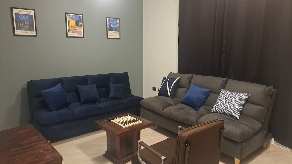 Departamento equipado con todo lo necesario para una estancia cómoda. Aire acondicionado y ventiladores en cada habitación; colchones y almohadas nuevos de memory foam Emma, Sognare y Luunna; Roku tv en cada recámara y sala; cortinas black out; 2 baños completos con ventilador c/u. Perfecta ubicación para moverse hacia cualquier punto de la ciudad y llegar en pocos minutos. Colonia segura, con variedad de servicios, tiendas de conveniencia, farmacias y opciones de comida en la periferia. Facturo
