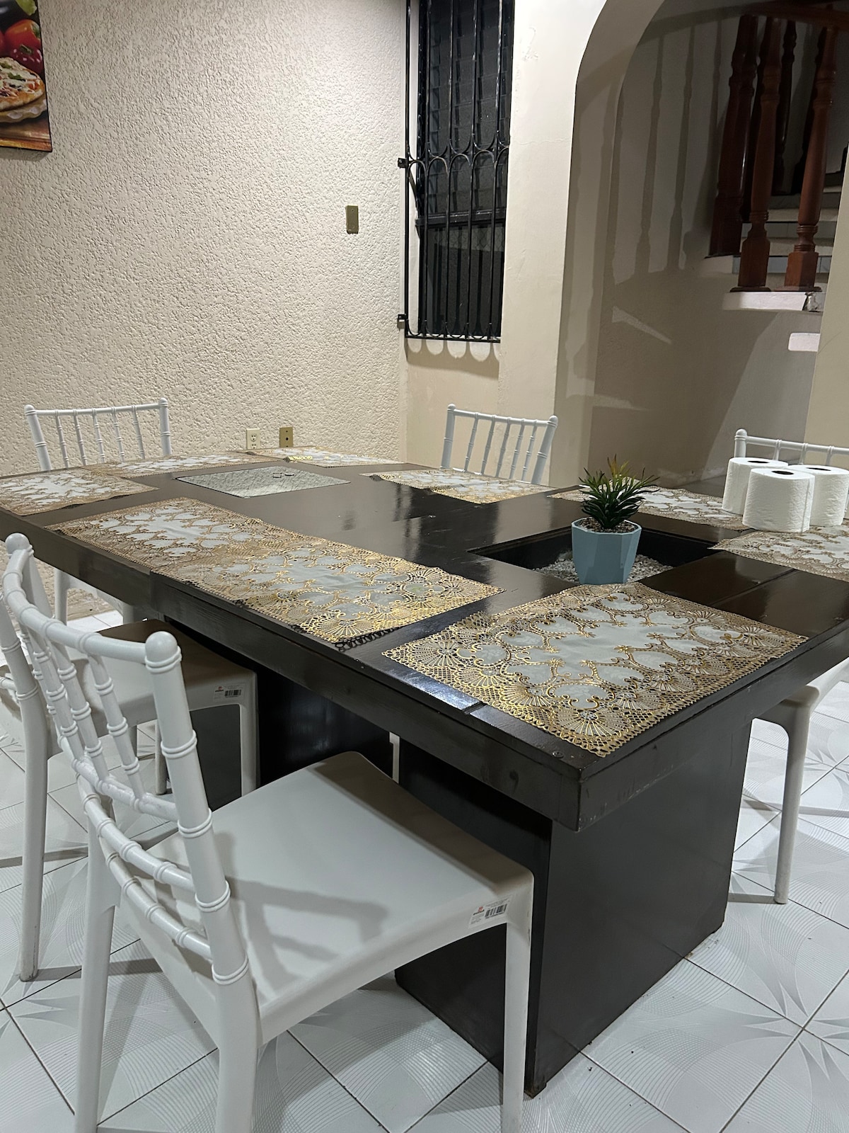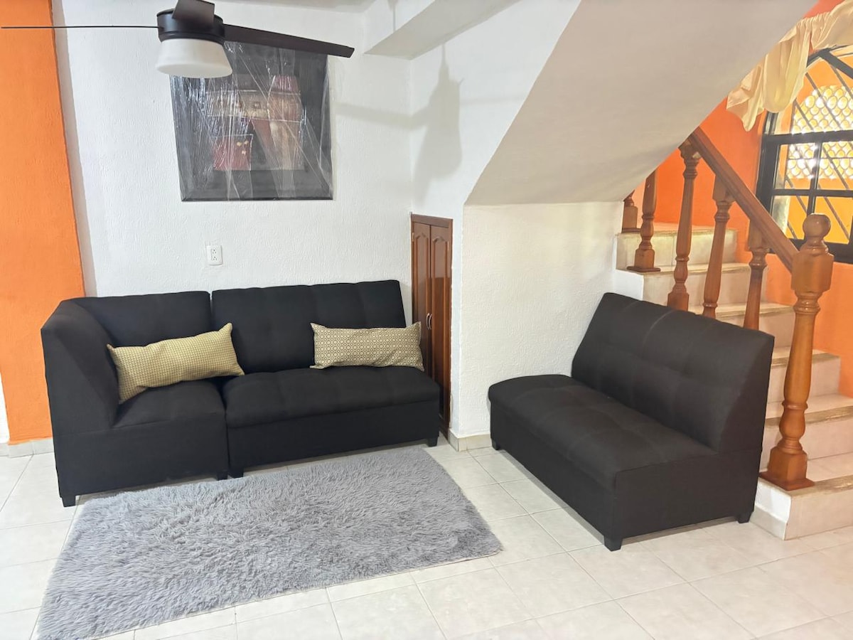 Disfruta de tu estancia con alojamiento completamente climatizado. Habitaciones comodas para tu viaje ya que se encuentra en una zona bastante tranquila. Recamara principal con baño independiente. Las 2 recamaras restantes comparten baño. En la 1er planta cuenta con 1/2 baño. Podrás utilizar todo lo que se encuentra dentro de la casa. Tenemos área con escritorio. Cuenta con un comedor para 6 personas, cocina con refrigerador y estufa completa de 4 hornillas. Licuadora, cafetera, plancha.