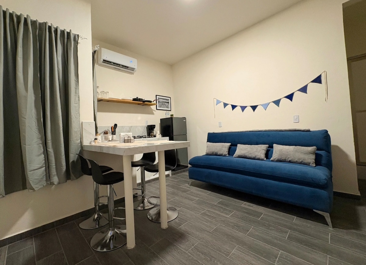 ✨ Departamento con Terraza Privada y ambiente relajante Disfrute de una estancia cómoda y tranquila en este acogedor departamento, ideal para descansar o pasar un buen rato. Cuenta con un rooftop privado perfecto para relajarse, tomar un café por la mañana o disfrutar de la noche con una vista abierta y un ambiente muy agradable. El espacio está equipado con lo necesario para que tenga una estancia práctica y cómoda. Además, su diseño sencillo y moderno creando un ambiente limpio y acogedor.