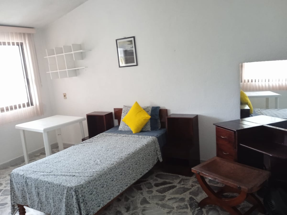 Enjoy a beautiful private room equipped for your comfort and relaxation. It features a king-size bed and a double bed, quality mattresses, a cedar dresser, a closet for clothes and luggage, a work area, and a 40” TV. The room a private bathroom with hot water, towels, and toiletries. Amenities include a mini-split air, a hairdryer, an iron, fast Wi-Fi (Izzi and Telmex), cable TV, parking, and access to common areas such as the kitchen, dining room, and living room, ideal for a comfortable stay.