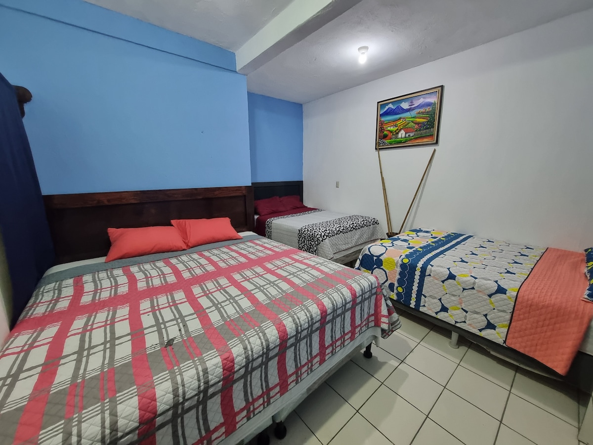 Al abrir la puerta de este lugar te encontrarás con 3 camas matrimoniales ideal si vienes en familia por motivo de viaje o turismo a un excelente precio.