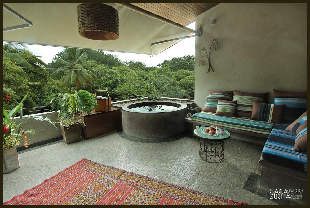 Mariposa is a beautiful cottage with a garden and dinning table right on the ocean view . It is made with antic windows, doors and wood, what gives it his warm an authentic touch. No tree had to be cut to make it! Also includes an outside art tile bath tub type and a hot shower, unique to this cottage.The forest on the property has been reforested in the last 30 years.If you are looking for something private, don't look further. If booked, we have more villas look please under Montezuma Heights.