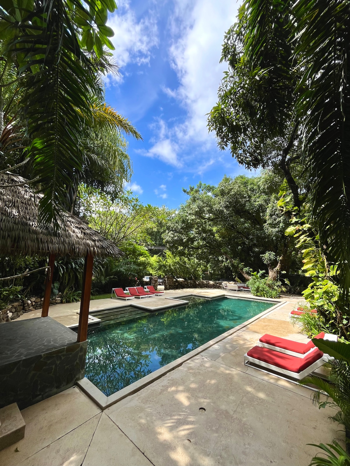 Surrounded by our carefully preserved native forest, this beautiful villa property is tucked off the beach, just steps from the town center of Santa Teresa. You can relax in the beachfront pool beneath the jungle canopy, or bask in the natural tide pools right out front! Enjoy everything you have ever dream of, from private starlit dinners on the beach to guided nature hikes, surfing and private chefs. We look forward to welcoming you into our community.